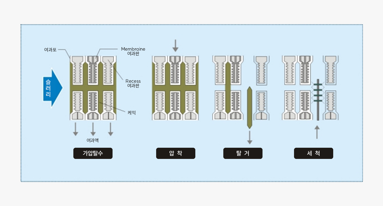ÇÊÅÍÇÁ·¹½º¿¡ ÀÇÇÑ ¿©°ú´Â ¹ÐÆóµÈ ¿©°ú½Ç³»·Î ¿ø¾×À» ¾ÐÀÔ½ÃÄÑ ¿©°úÀ縦 ÅëÇØ °íü(cake)¿Í ¾×ü(filtrate)¸¦ ºÐ¸®½ÃŰ´Â °øÁ¤À» ¸»ÇÑ´Ù.